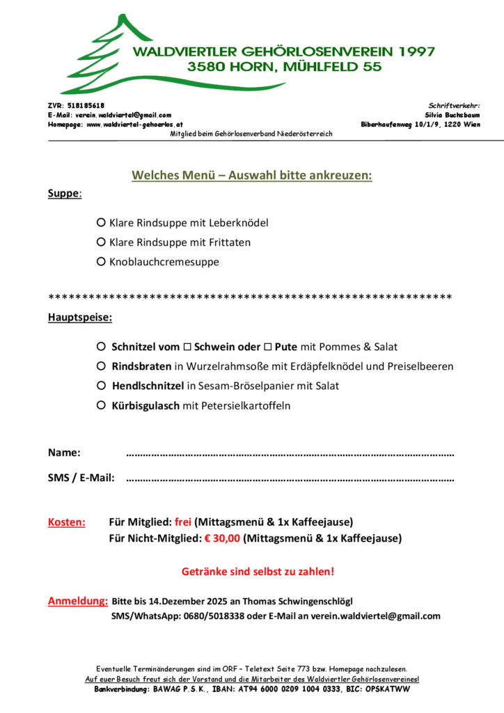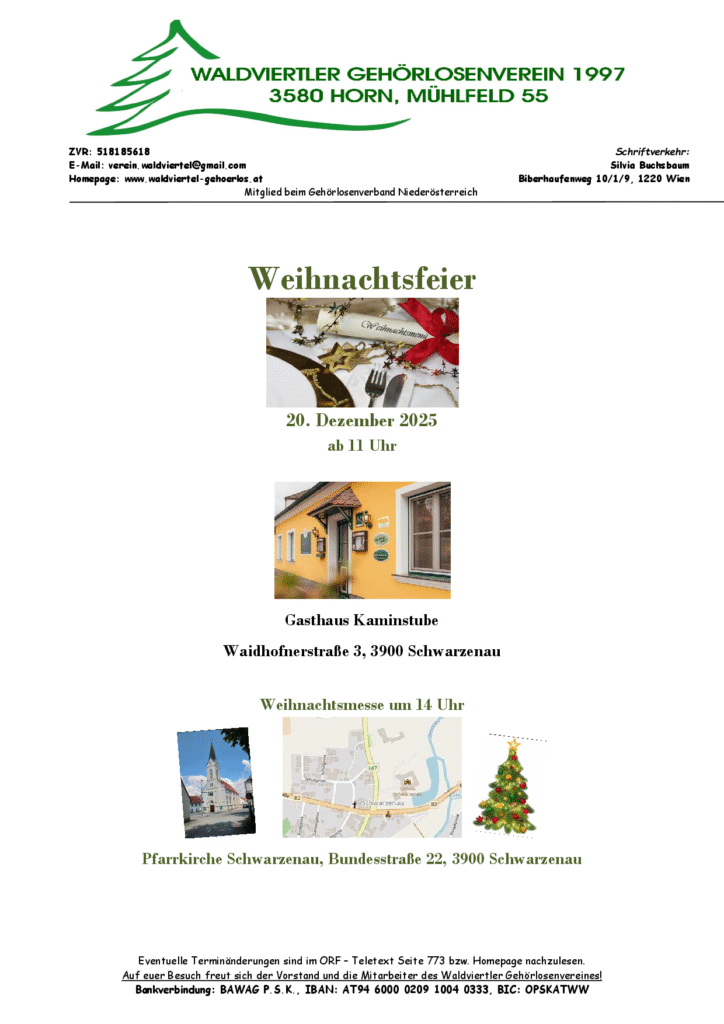 Startseite 17. November 2025 Herzlich willkommen beim „Waldviertler Gehörlosenverein“! Der Waldviertler Gehörlosenverein wurde 1997 gegründet – siehe Chronik. Das Vereinstreffen findet in Mühlfeld statt.Wann das Vereinstreffen statt findet, findest du im Programm. Viel Spaß beim Durchstöbern!