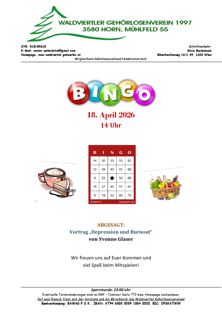 Startseite News: Programm für TagesausflugHerunterladen 7. April 2026 Das Programm für 2026 ist auch da – siehe Programm.